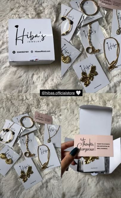 Hiba’s Jewelry is a fast-growing premium luxury brand, founded in 2025, offering unique and trendy stainless steel jewelry at affordable prices. Designed for everyday elegance, our pieces are long-lasting, stylish, and beautifully presented in premium packaging—perfect for gifting your loved ones or treating yourself.